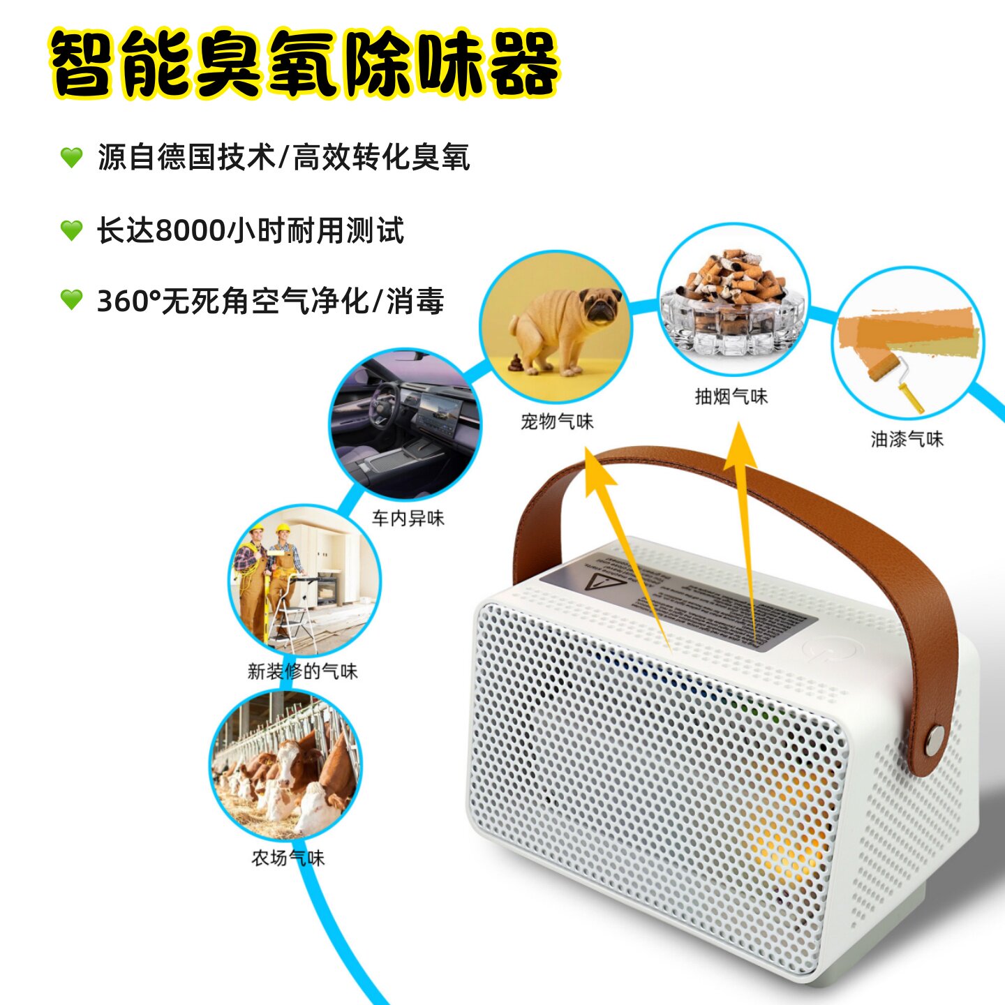 臭氧消毒机家用办公室桌面空气净化器新房除甲醛汽车宠物除味神器