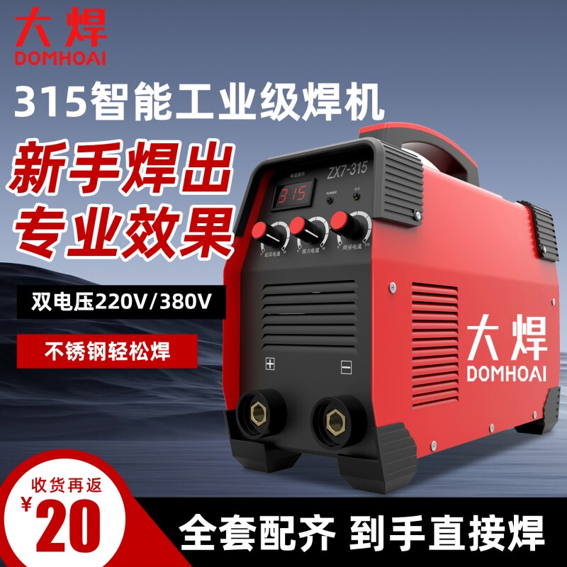 大焊电焊机220v家用380v工业级315便携式纯铜双电压小型两用焊机