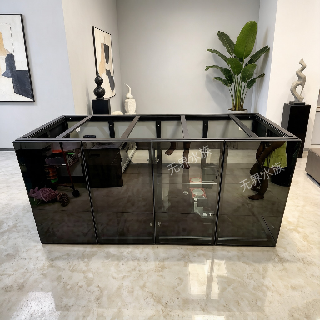 玻璃门鱼缸柜底柜定制极简黑白灰无边框铝合金底柜灰黑玻鱼缸底座