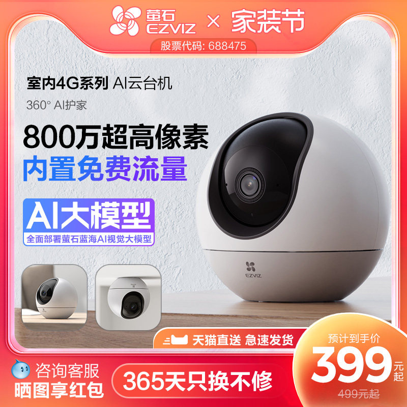萤石H6 4G网络云台360度无线AI摄像头家用手机远程监控流量免费用