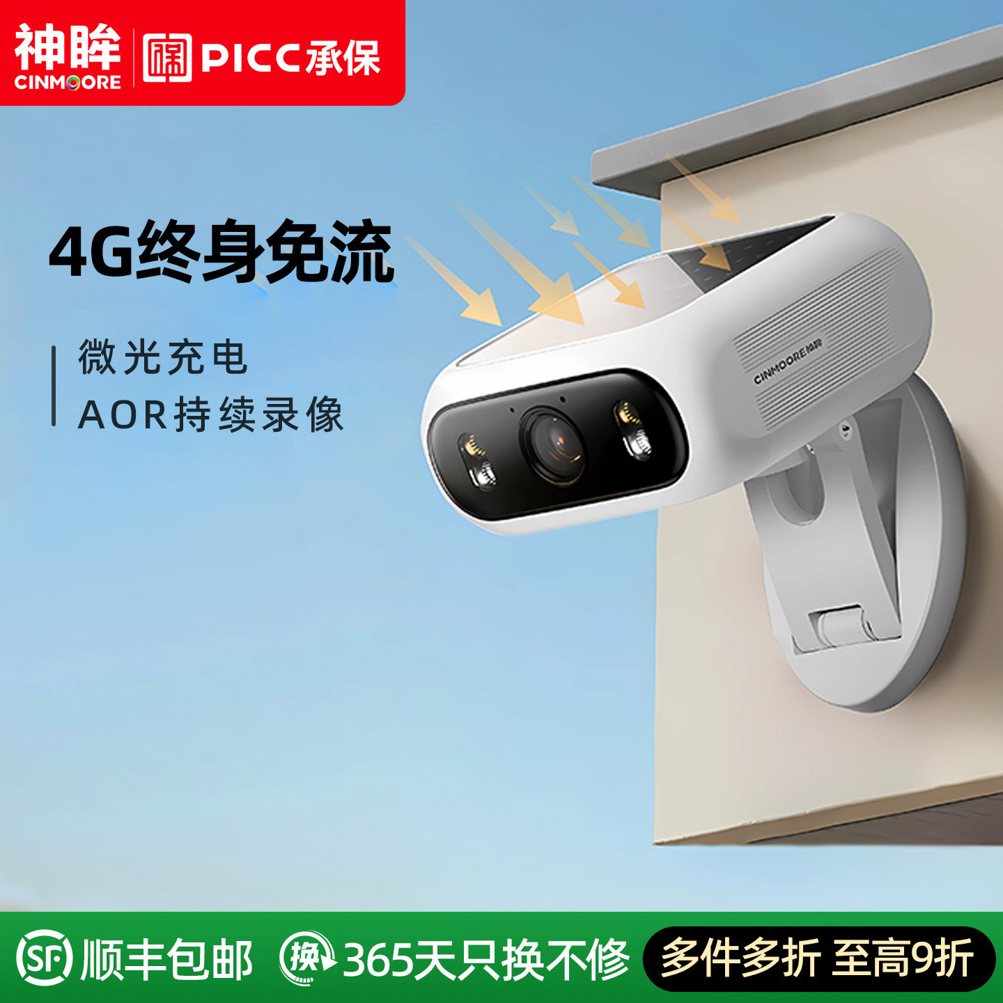 神眸BC7一体式太阳能摄像监控器360度无死角无线免插电4G终身免流
