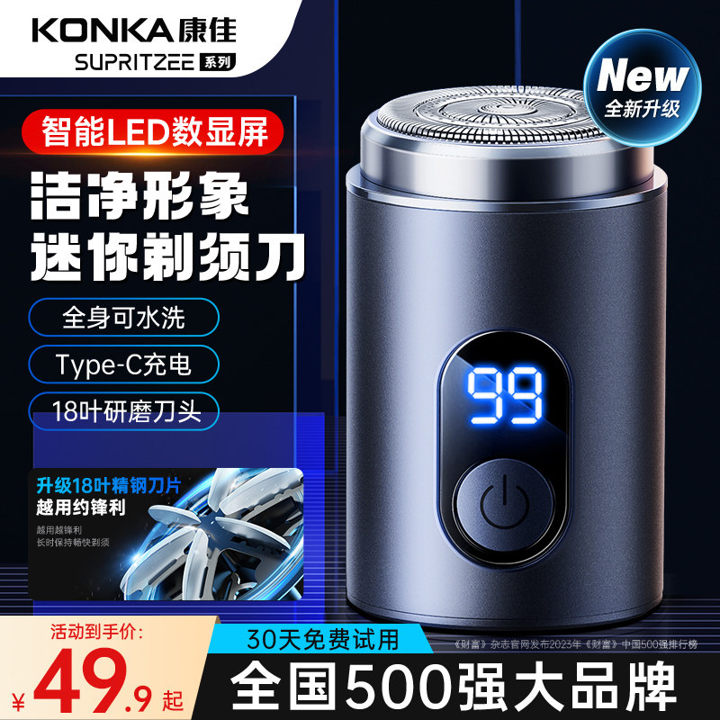 【免费试用】康佳剃须刀男士电动迷你便携刮胡刀官方正品2025新款
