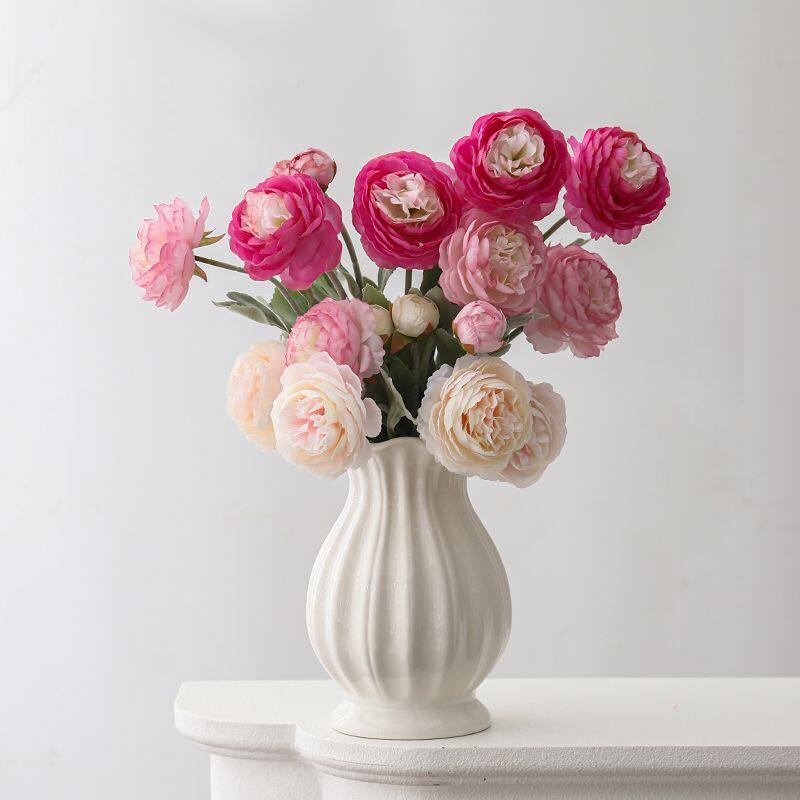 欧式玫瑰插花花瓶白色简约陶瓷花器客厅餐桌干花鲜花水培装饰摆件