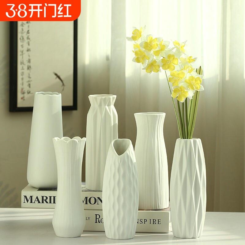 北欧塑料白色小花瓶家居插花花器客厅现代创意简约居家装饰品摆件