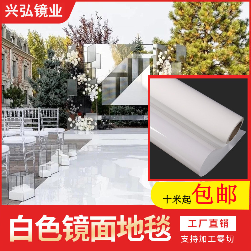 婚庆镜面地毯白色地毯婚礼T台舞台白色反光地毯PE白色镜面板装饰