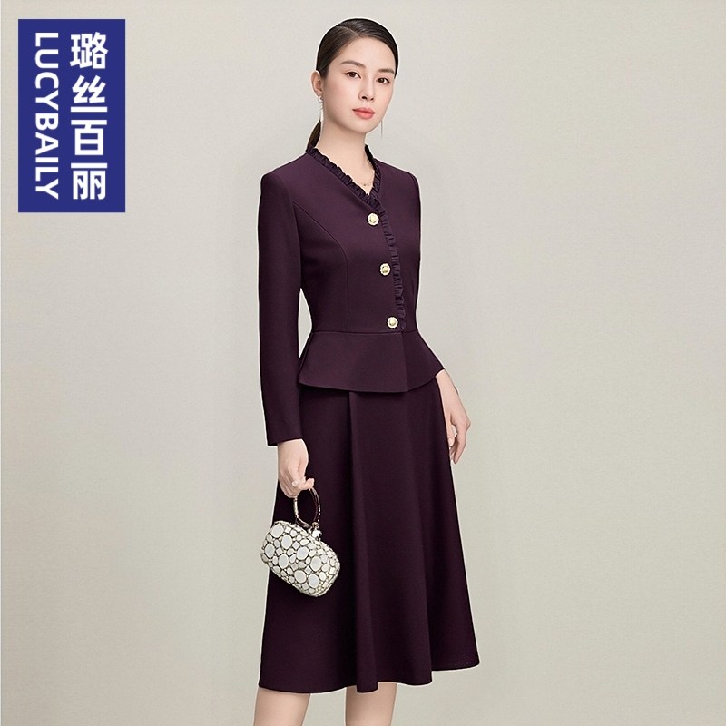 颈袖添香礼服修身包臀职业OL通勤正装春夏紫色名媛气质高端连衣裙