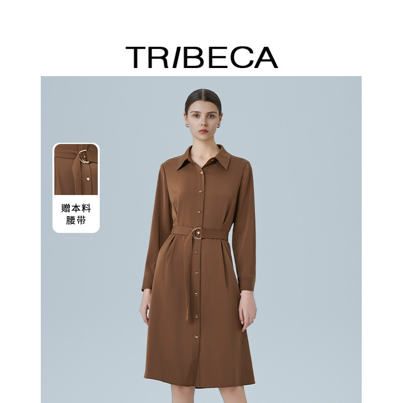 TRIBECA翠贝卡2025秋新款商场同款修身通勤OL风中长款衬衫连衣裙