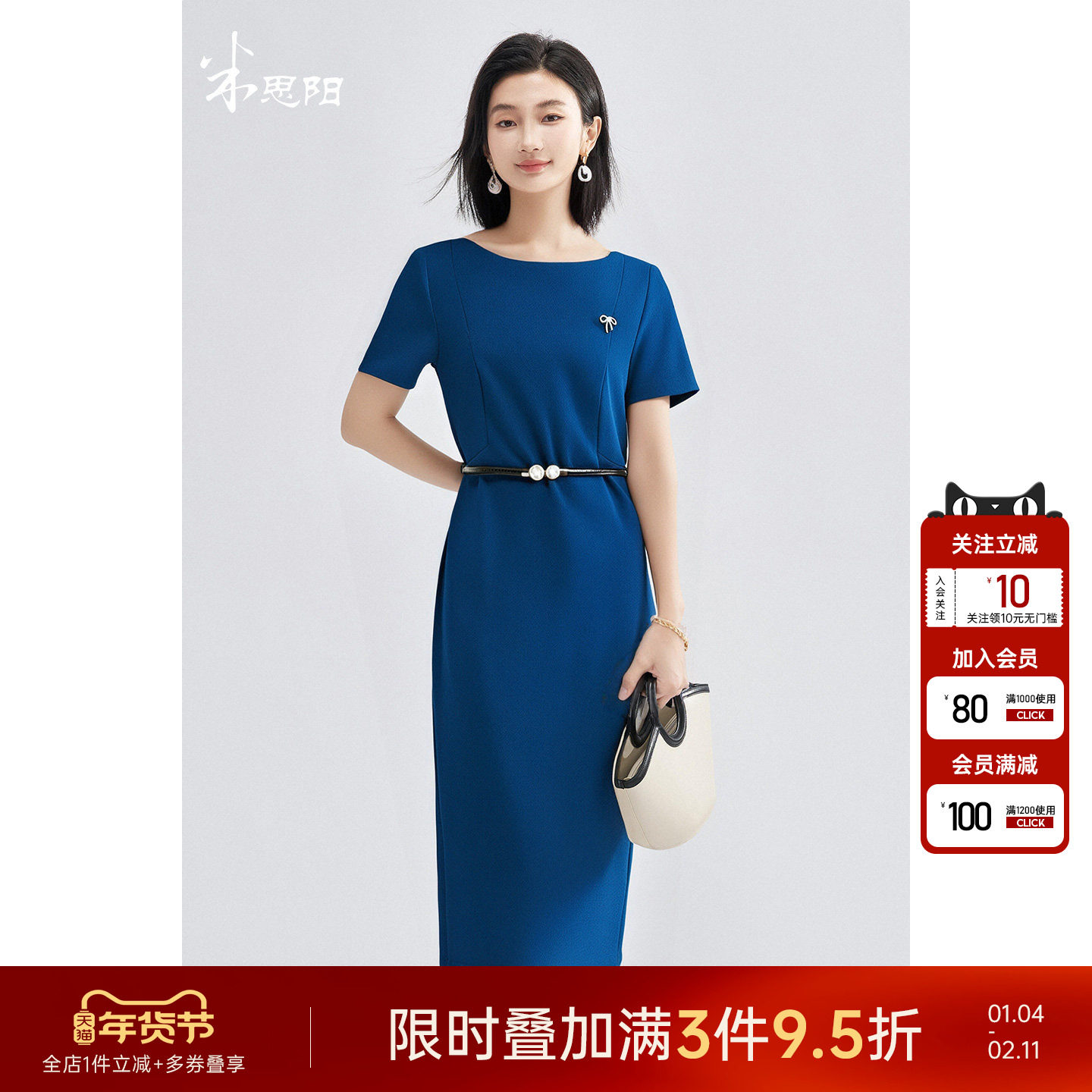 米思阳2025夏季新款时尚简约通勤OL短袖连衣裙修身显瘦中长裙1462