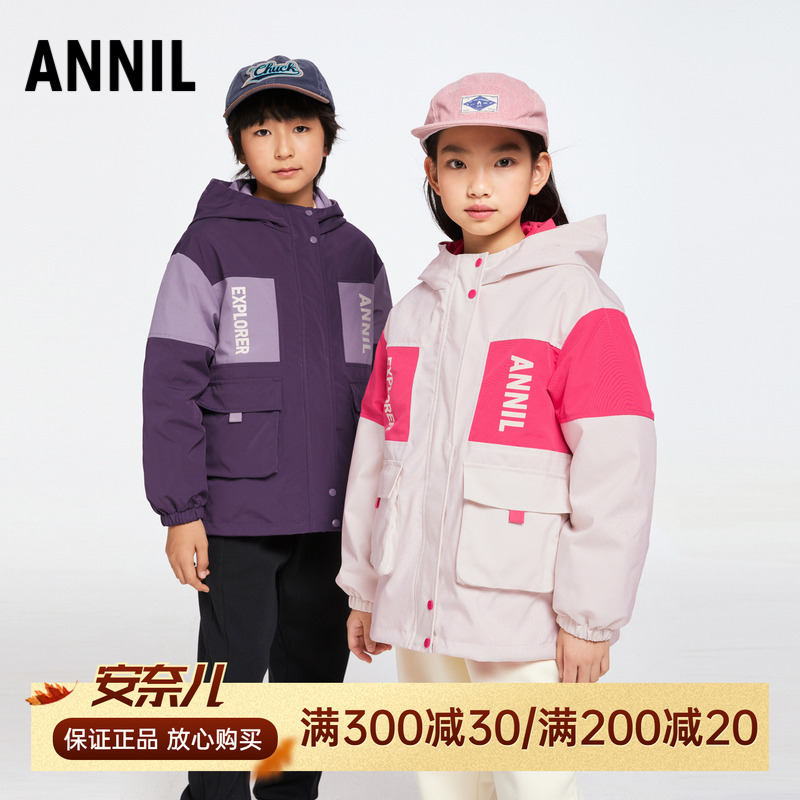 安奈儿男女童装脱胆两件套2024冬新款户外保暖羽绒服内胆风衣外套