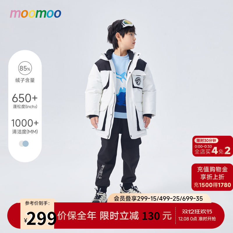 美特斯邦威旗下童装moomoo男童三防户外保暖羽绒服冬精致徽章外套