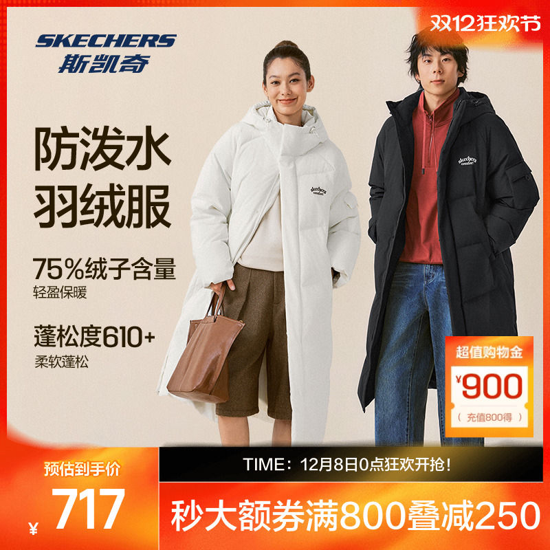 斯凯奇户外保暖羽绒服长款2025年冬季男女同款防风防泼水连帽外套