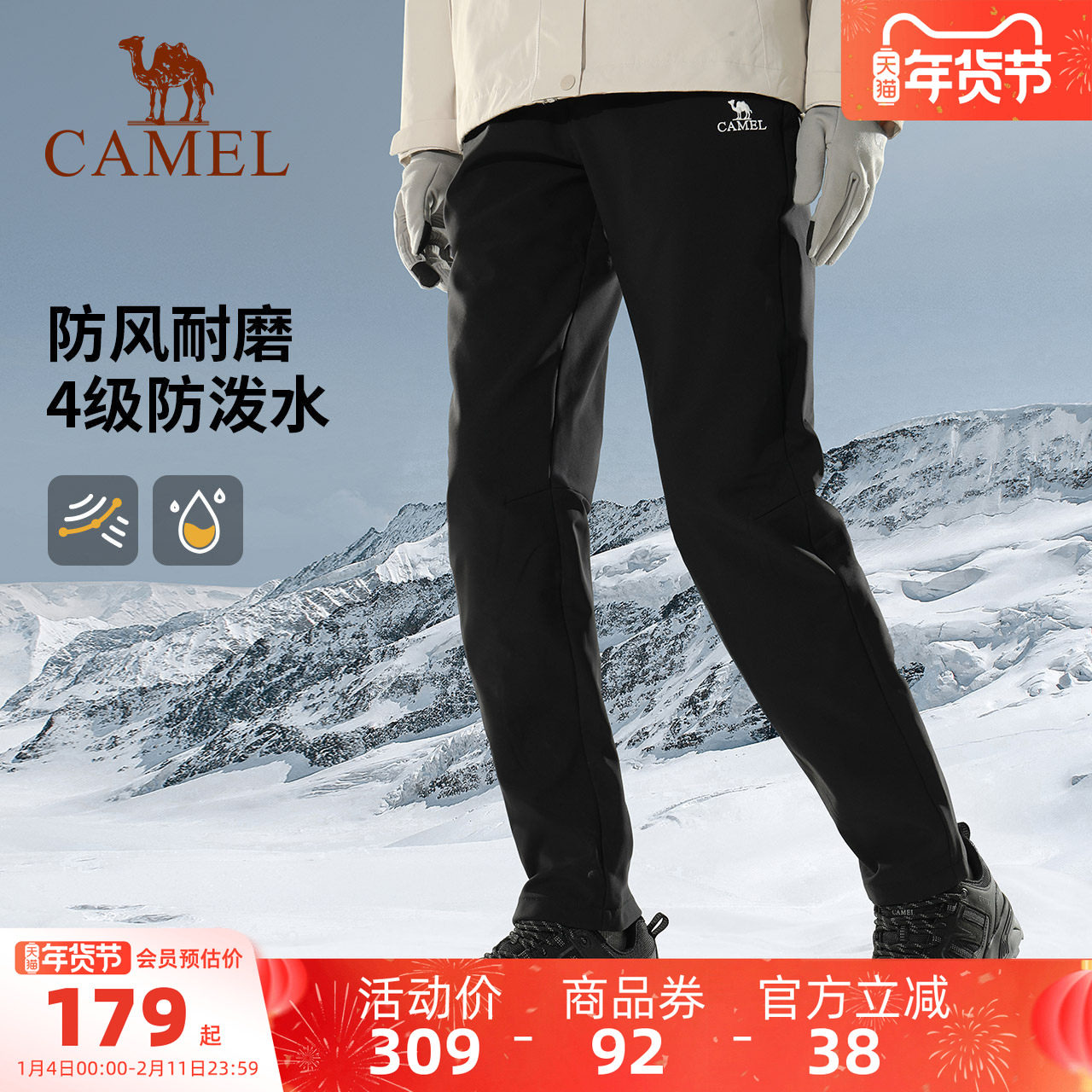 [迪丽热巴同款]骆驼户外冲锋裤女防水防风裤秋冬加绒保暖登山裤男