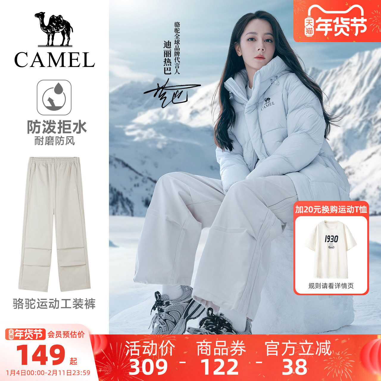 【迪丽热巴同款】骆驼运动工装裤女秋冬防泼水直筒户外徒步登山裤