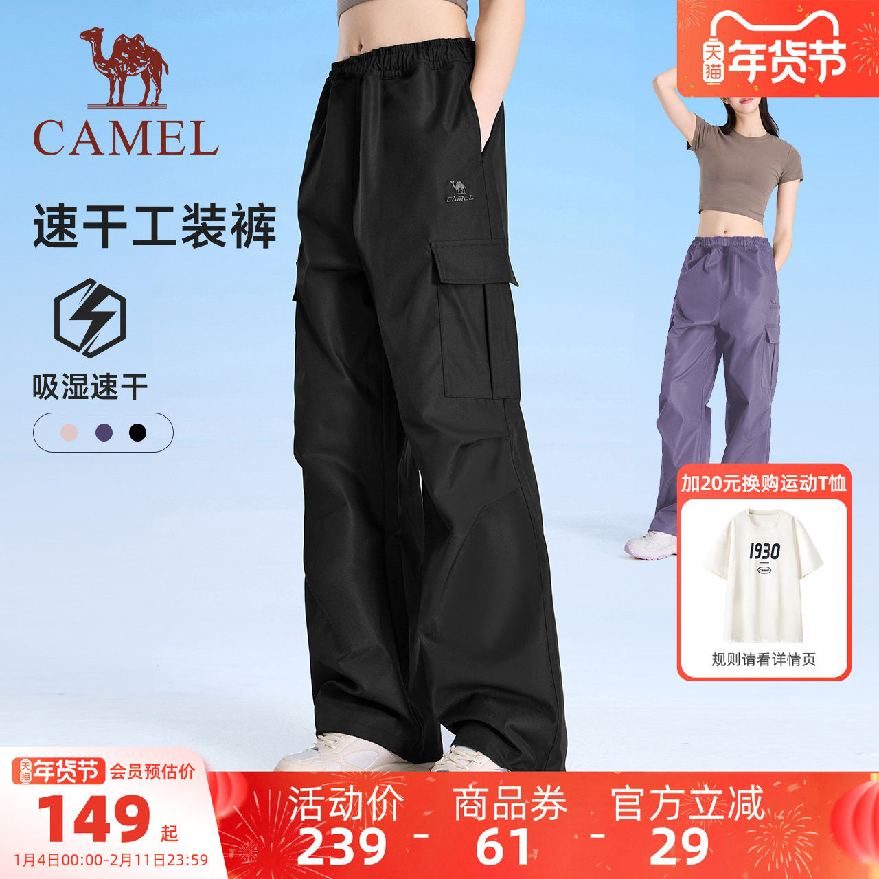 【防泼水】骆驼机能休闲裤女秋季运动登山裤户外伞兵裤束脚卫裤男