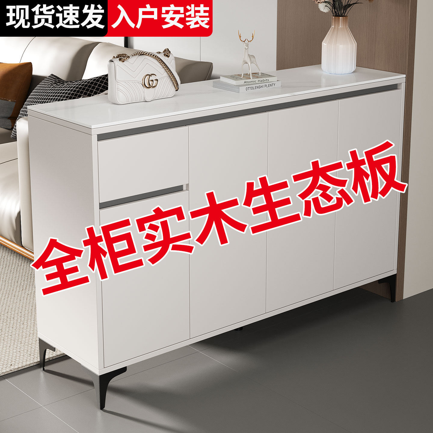全实木加厚岩板鞋柜家用入户门轻奢玄关柜客厅收纳储物柜隔可定制