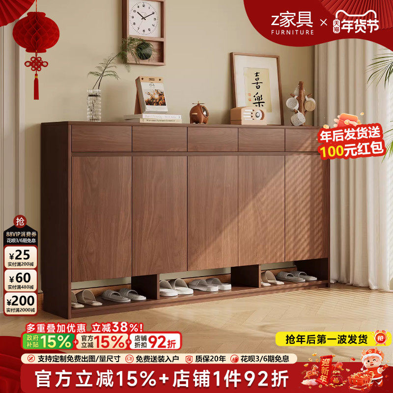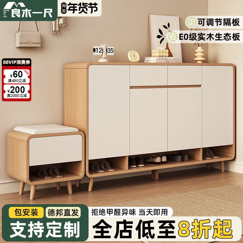 全实木鞋柜家用门口一体靠墙入户玄关柜现代简约客厅新款储物柜子