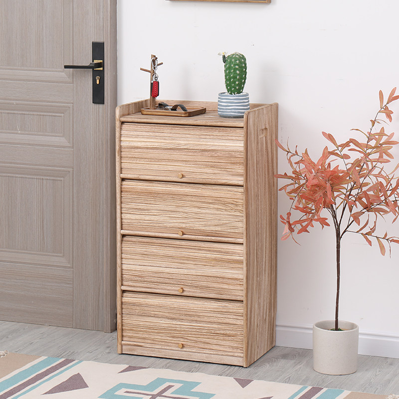 全实木鞋柜白橡木家用门口窄小入户玄关柜原木靠墙收纳储物柜日式