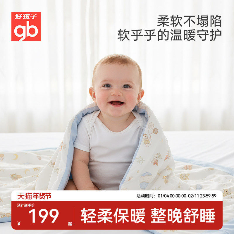 gb好孩子婴儿脱卸被7A抗菌秋冬可水洗棉花盖被宝宝幼儿园午睡被子