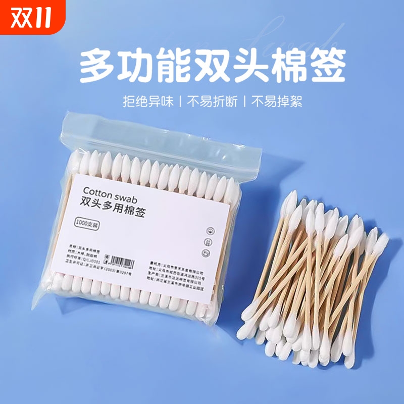 1000只双头棉签棒家用化妆掏耳小头细棉花棒医用一次性尖头清洁棒