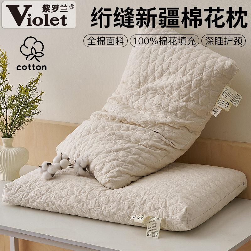 紫罗兰里外全棉绗缝新疆棉花枕头学生枕成人枕芯家用儿童透气枕头