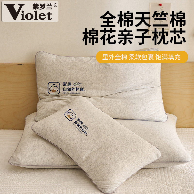 紫罗兰全棉天竺棉棉花亲子枕儿童枕学生枕成人枕头枕芯柔软助睡眠