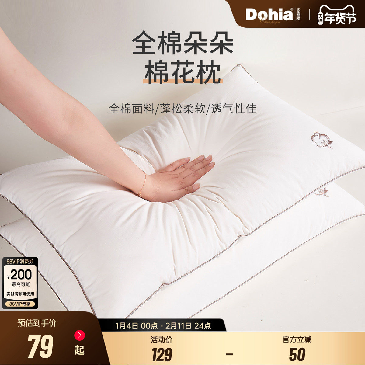 多喜爱全棉枕芯家用棉花枕头学生宿舍枕芯单个睡眠枕成人助眠护颈
