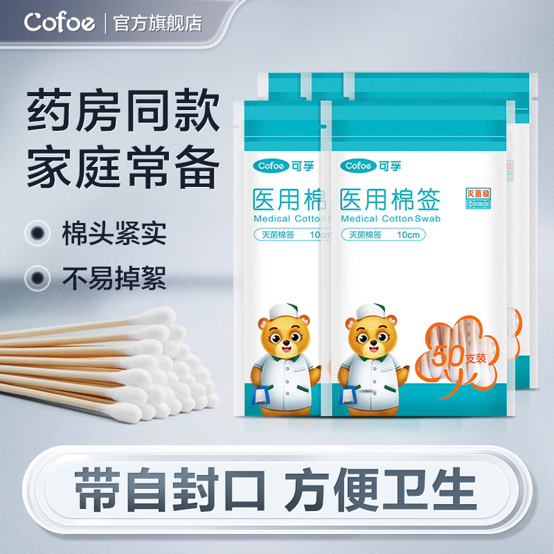 可孚医用棉签无菌一次性医疗脱脂棉单头棉棒医药棉花球小包装批发