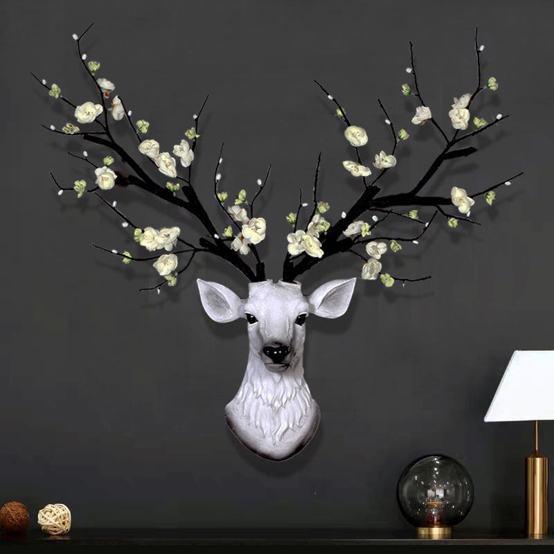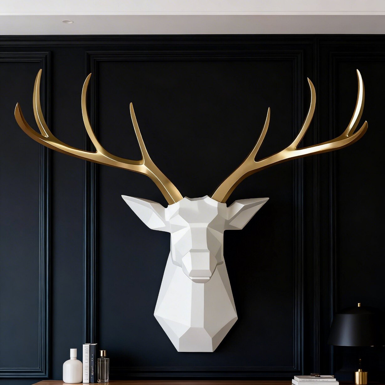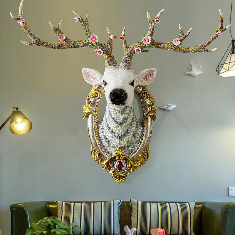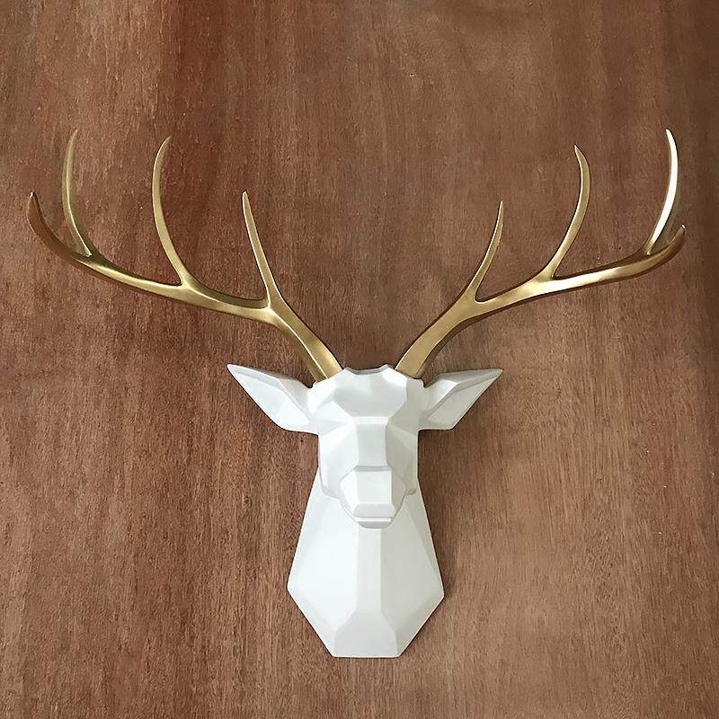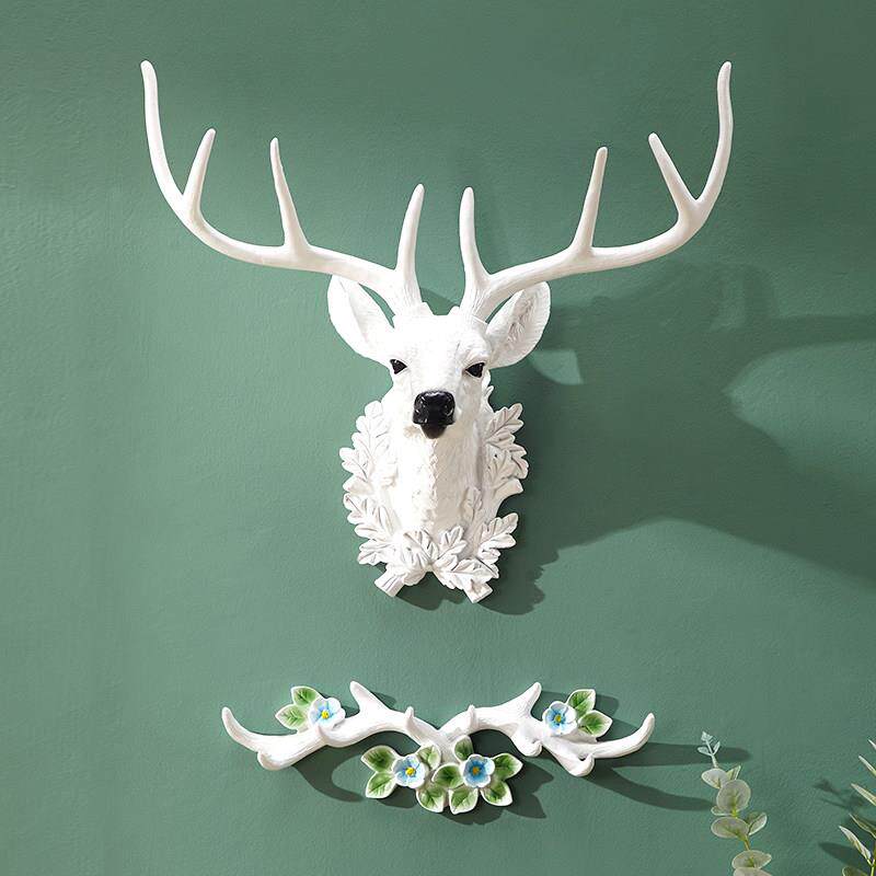 轻奢鹿头金角白头壁饰现代北欧动物头客厅装饰电视墙家居餐厅挂件