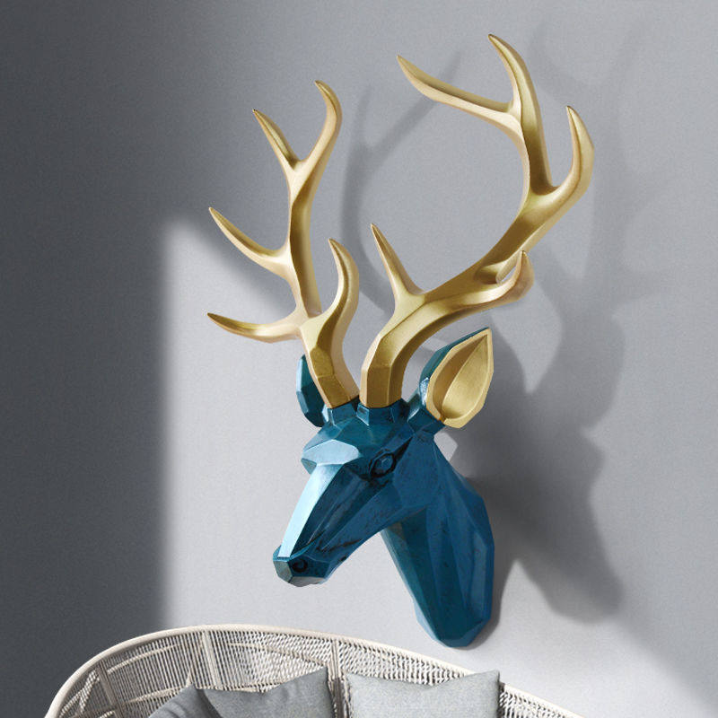 轻奢鹿头壁饰现代北欧立体动物头客厅装饰电视墙家居饭厅玄关挂件
