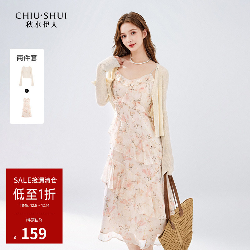 【两件套】秋水伊人奥莱甜美碎花吊带裙套装秋季女装连衣裙两件套