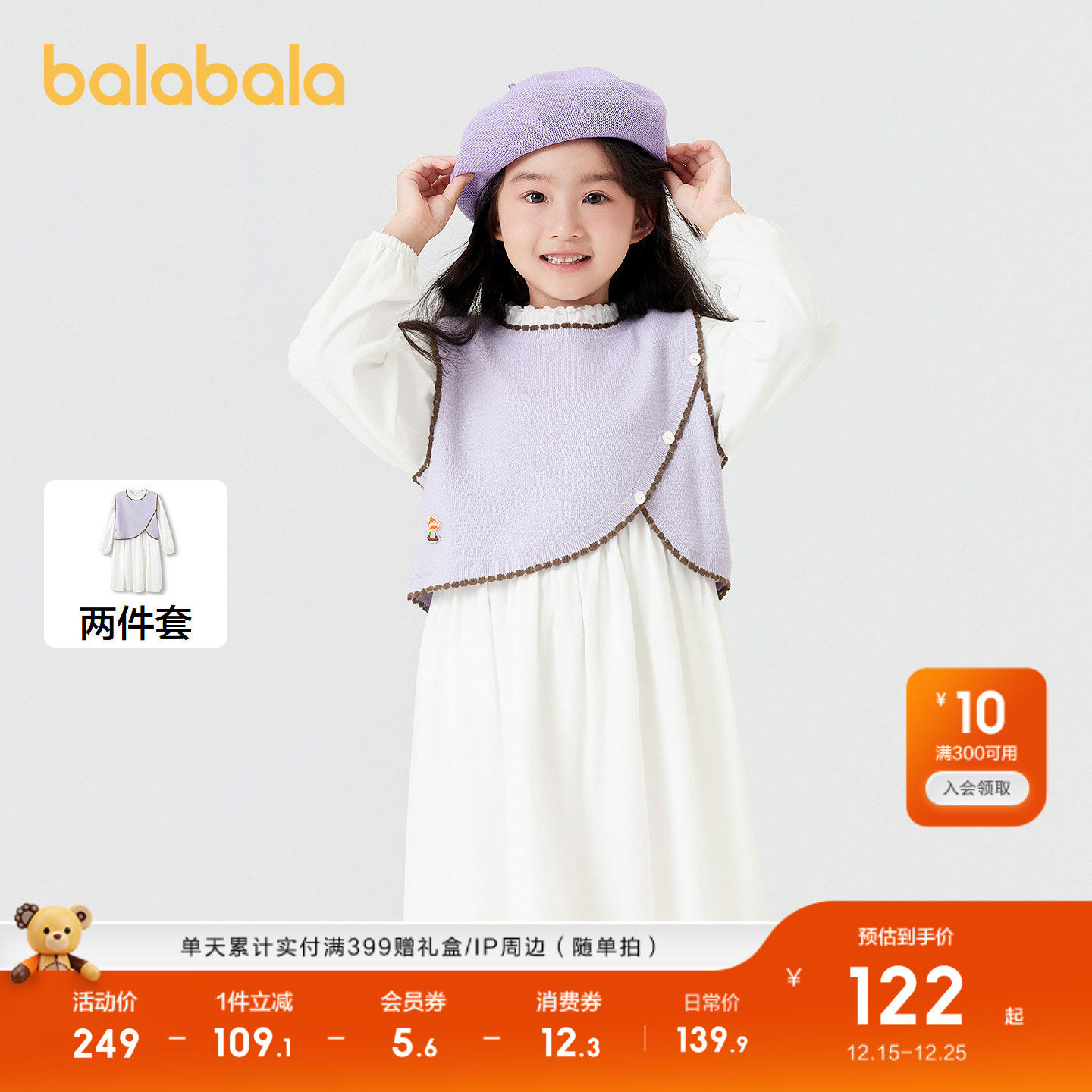 【商场同款】巴拉巴拉女童连衣裙套装小香风2025新秋冬两件套甜美