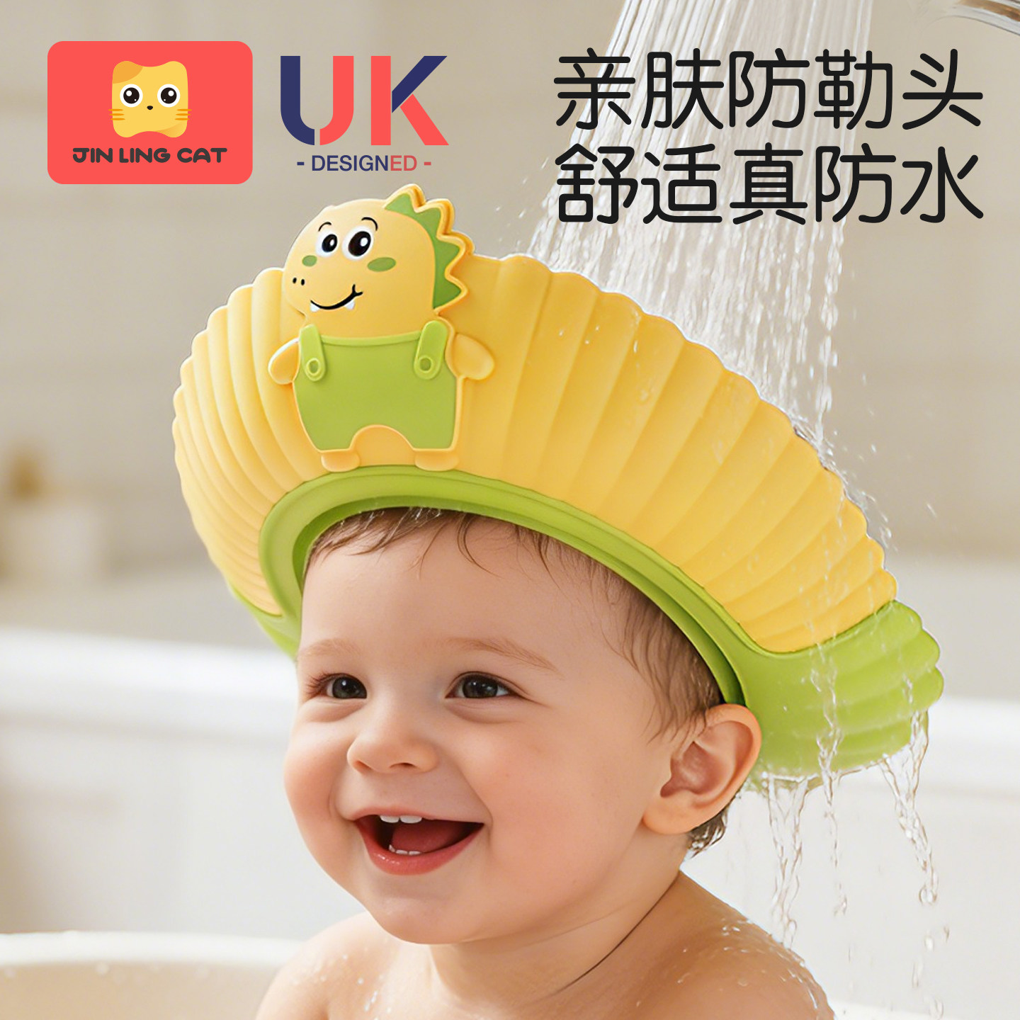金领猫儿童洗头挡水帽宝宝防耳朵进水浴帽新生婴幼儿洗澡洗头神器