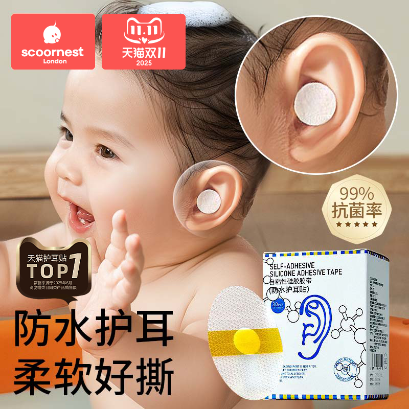 防水耳贴婴儿宝宝洗澡新生儿童护耳贴幼儿防耳朵进水神器小孩洗头
