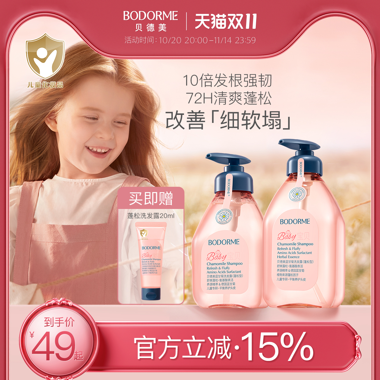 贝德美儿童洗发水专用0-15宝宝控油去屑蓬松青少年中大童洗头膏