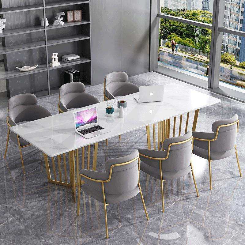 北欧简约大理石会议桌工作室培训洽谈长条桌员工电脑办公桌椅组合
