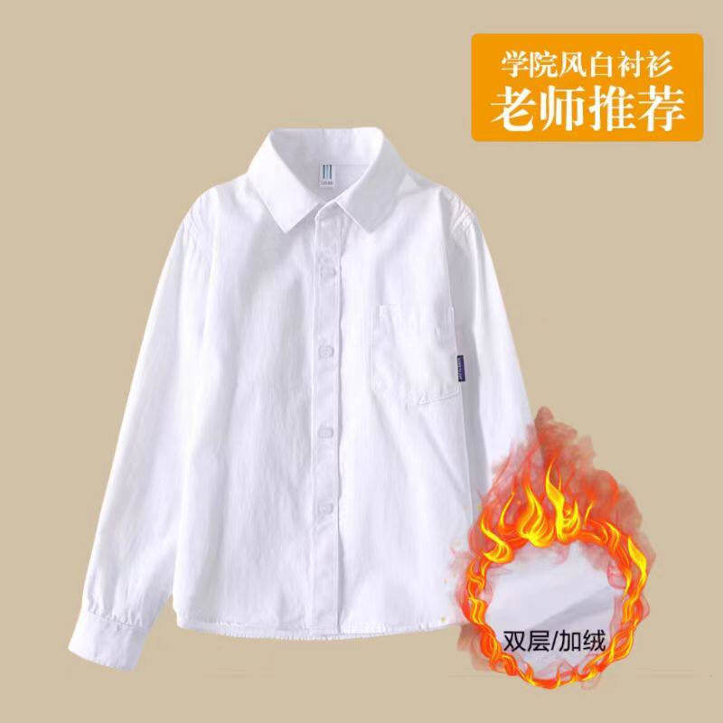 中小学生白衬衫校服女童白色衬衣男童上衣礼服儿童班服加绒白衬衣