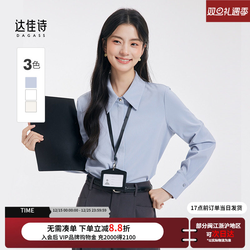 达佳诗蓝色长袖衬衫上衣女2025新款职业正装大学生考公面试蓝衬衣