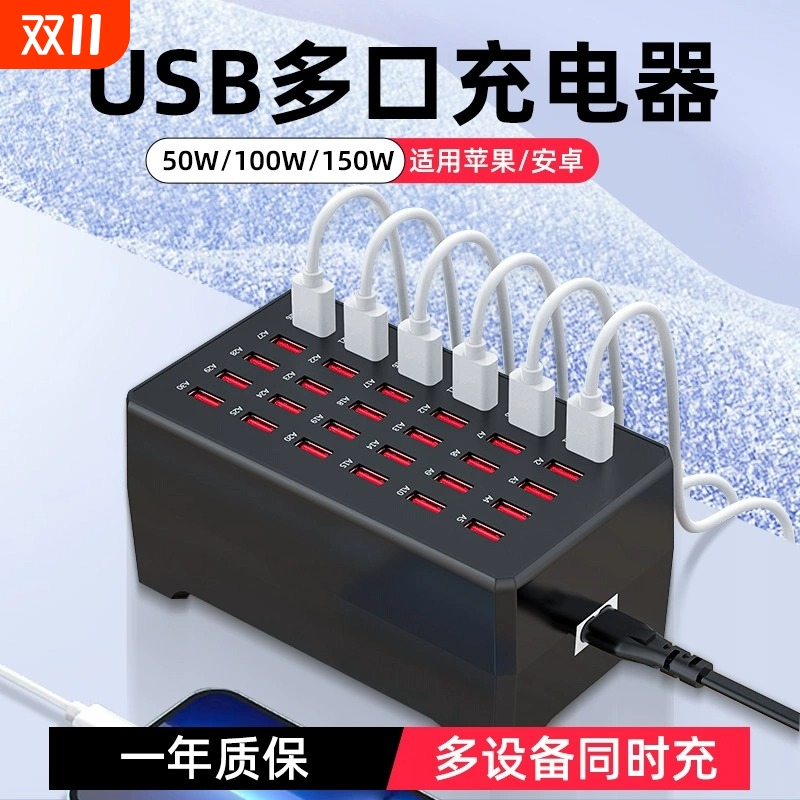 usb多口充电器适用华为小米手机插头智能大功率电源30/10/50工作室多功能充电头多孔排插座集成万能充电桩站