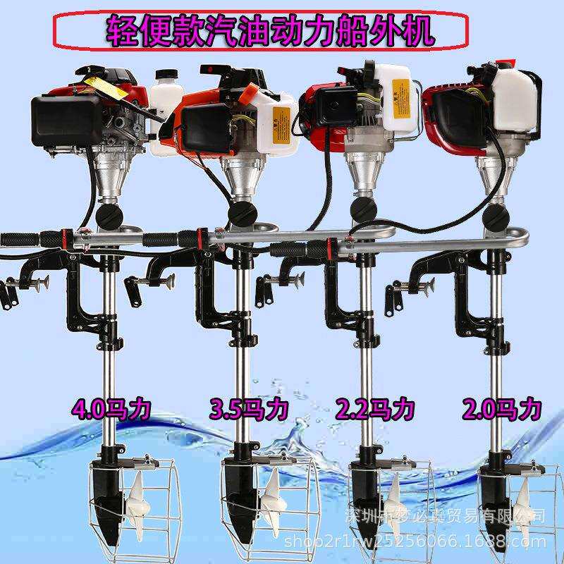 动皮划艇马达推塑料船汽油浆用机挂螺旋桨四冲程上船外机推进器器