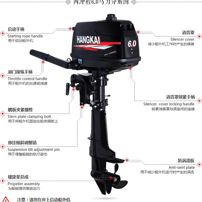航凯二四冲程汽油机船用马达船尾推进器船外机挂机发动机螺旋桨二