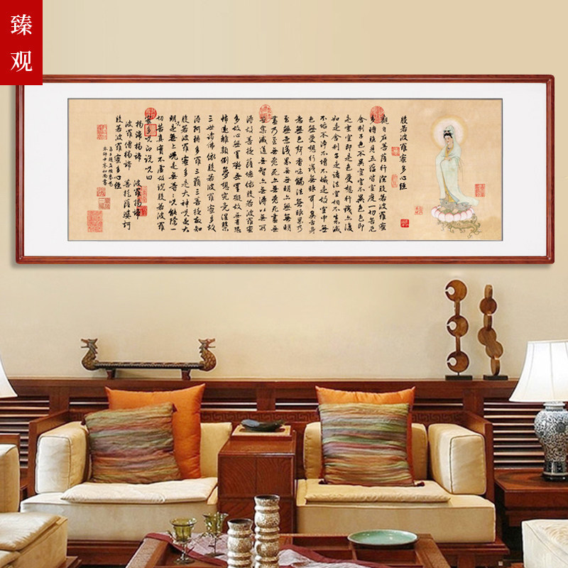 赵孟頫心经书法有框画 新中式风格装饰字画 檀皮徽宣客厅挂画 水