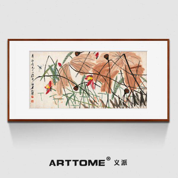 荷花蜻蜓 齐白石写意水墨国画 新中式客厅餐厅现代装饰画馆藏版画