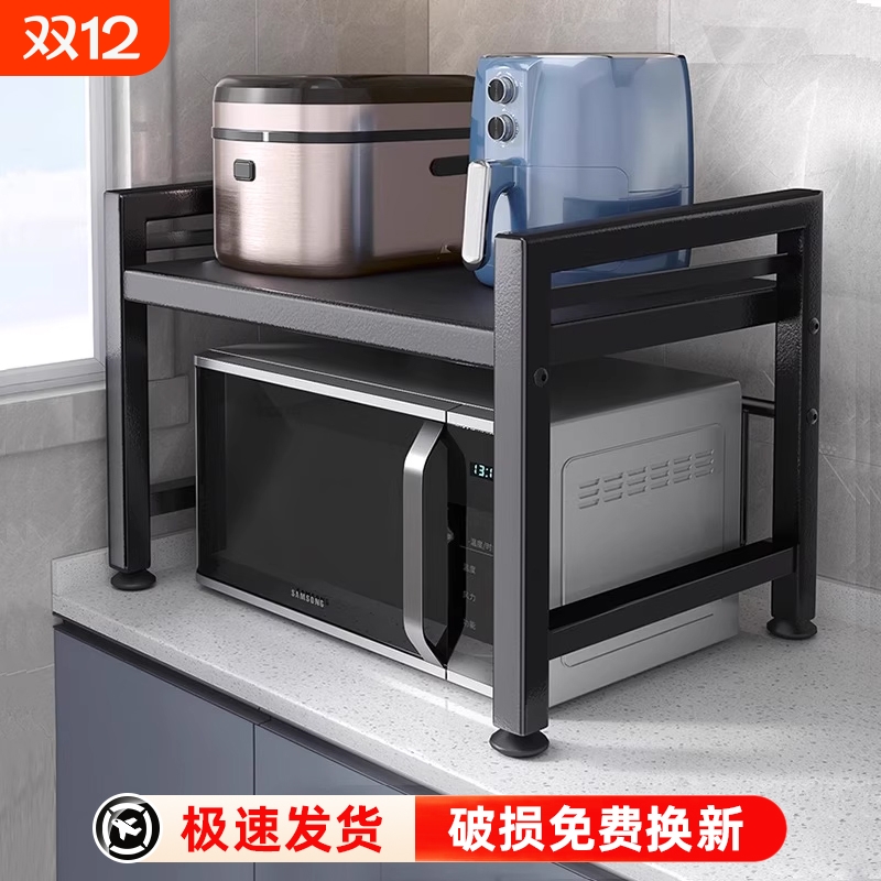 厨房微波炉置物架可伸缩家用双层烤箱架子台面桌面电饭煲收纳架子