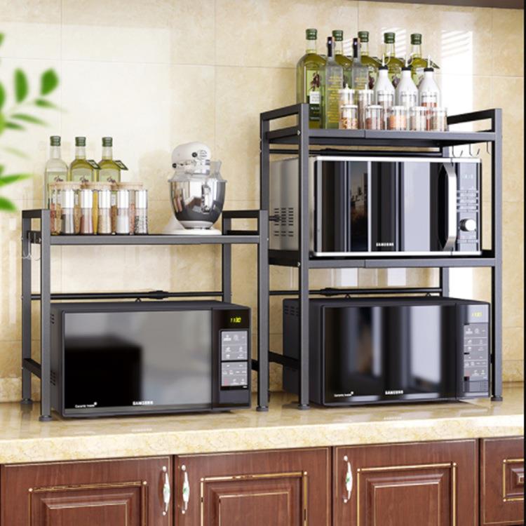 厨房微波炉架置物架家用多功能烤箱支架电饭煲双层可伸缩收纳架子