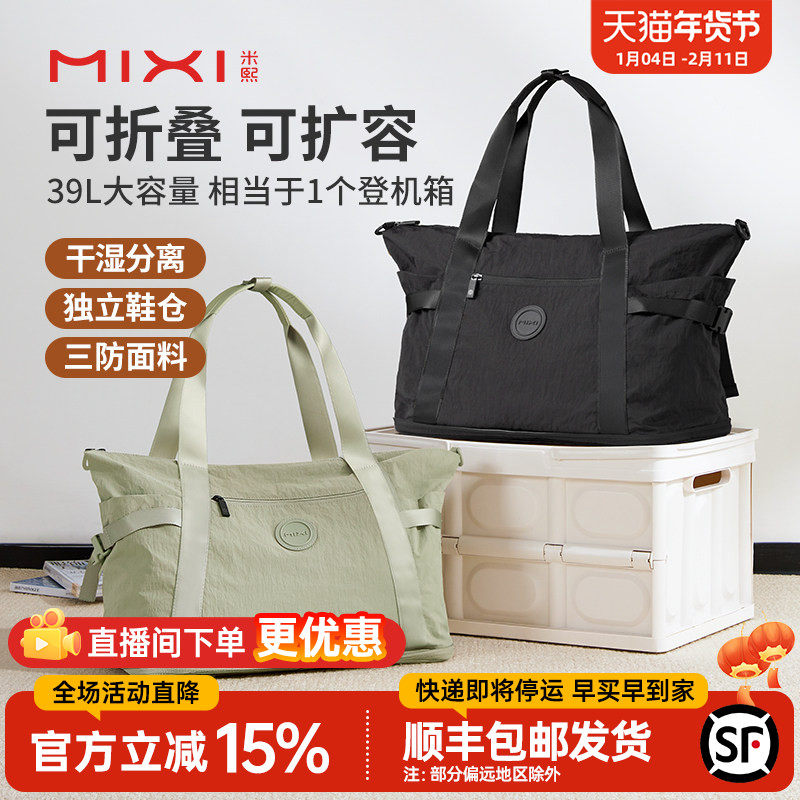米熙可扩容折叠旅行包女大容量手提短途旅游登机行李袋轻便健身包