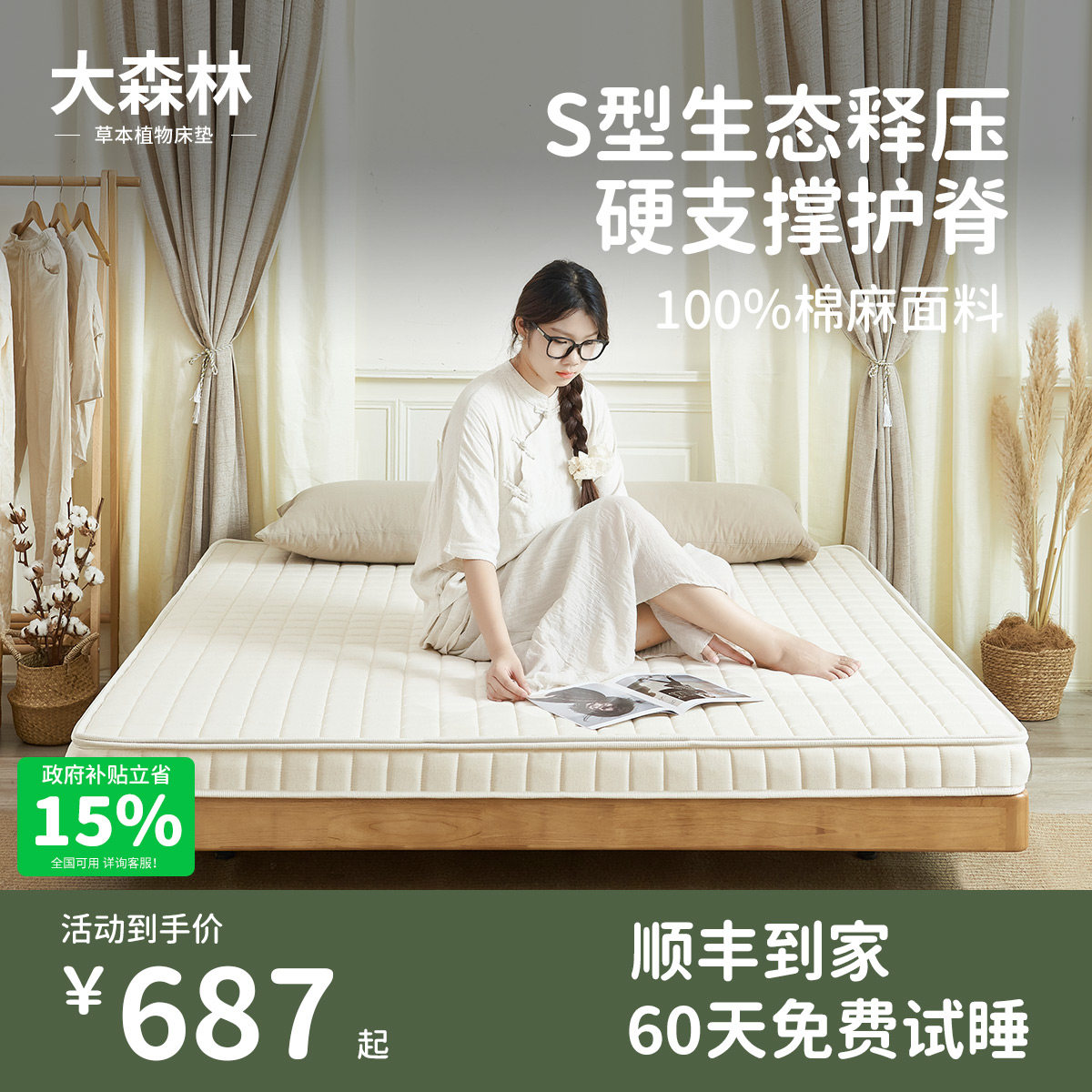 大森林家居黄麻床垫棕垫榻榻米偏硬垫护脊软棕榈乳胶可定制M25