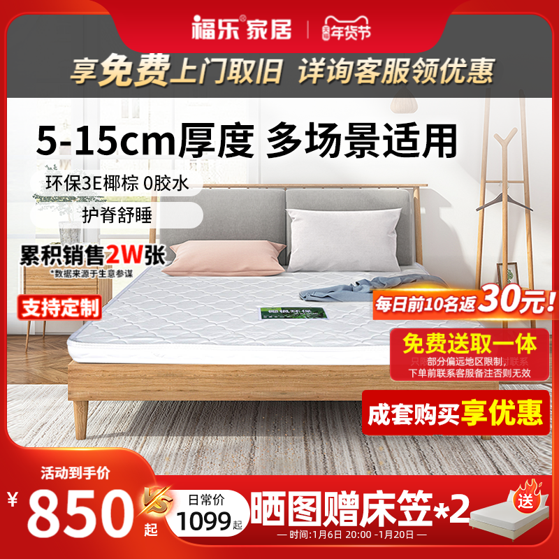 福乐床垫家用租房双人环保椰棕垫榻榻米3E椰梦维薄棕垫可定制椰风