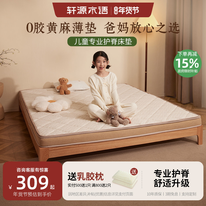 轩源木语黄麻乳胶床垫儿童环保0胶水薄棕垫榻榻米护脊偏硬可定制