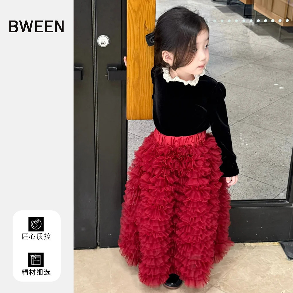 女童套装冬季2025新款洋气韩版儿童保暖金丝绒打底衫半身裙两件套