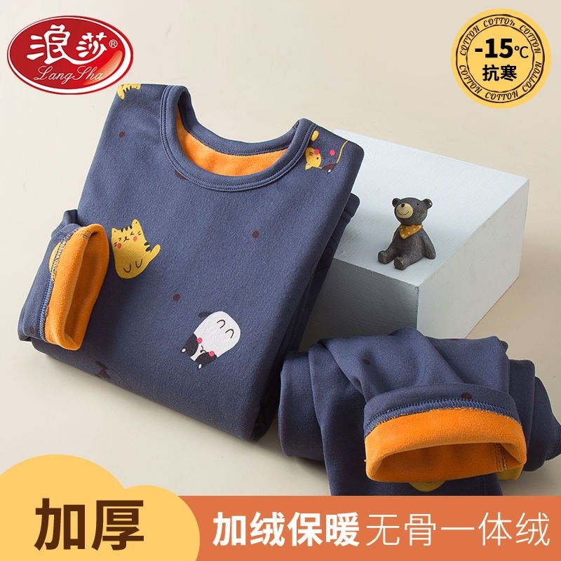 浪莎儿童加绒加厚内衣套装金丝无骨保暖防寒特厚保暖女童秋衣秋裤
